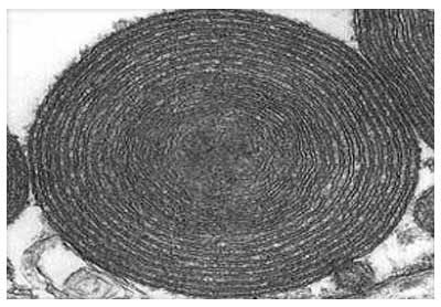 Ultrastructural abnormalities: electron microscopy examination shows mitochondria which are altered in shape, size and internal structure